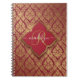 Maroon Red Guld Fleur Damask Pattern Monogram Anteckningsbok