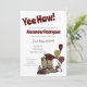 Ja! De tar examen och det är dags att fira. Det här söta kortet innehåller en grupp av en cowboybock som är full med en studentmössa och omgiven av bokar, ballonger, och det där allviktiga diplom. Perfekt för att tillkännage sin studenten-ceremoni eller bjuda in människor till party för att fira. Lägg till ditt favoritfoto på baksidan. Finns i en neutralt svart tillsammans med färg i större Texas skolor. Matchande produkter är tillgängliga.