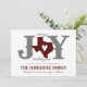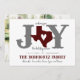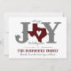 Den här julhelgen är enkel att önska vänner och familj från Texas. "O" i glädje ersätts av Texas med ett hjärta som är avskuret från mitten. Western-stil-bokstäver parade med handskriven text. Anpassa framsidan med din familj namn och baksidan med ditt favoritfoto. Med design kan du välja egen färg. Kommer i rött, grönt, blått, lavender, akvu, maron, bränd orange, guld och silver. Matchande produkter är tillgängliga.