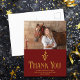 Anpassade maroon veterinär examens tack-kort med veterinär medicinsk kaducé bredvid ditt examensfoto. Anpassa detta tack-kort med chic guldsnitt bredvid ditt fotografi.