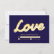 Kärlek skrivet i ljusreklam på en mörkblå bakgrund ger denna RSVP vintageglans och glamour. Scrolla ned för att se hela brölloppskollektionen. Om ytterligare föremål behövs för din händelse, kontakta oss bara på prettyfancyinvites@gmail.com med din förfrågan.