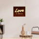 Kärlek är sött, skrivet i vintage marquee ljus dekorerar detta poster på en baksida på en rustik ladugård. Detta gör perfektens dekoration för den orusliga, land eller lada bröllop-desserten bord. Rulla ner för att se den samordnande insamlingen av bröllop.