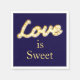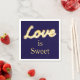Kärlek är Sweet, skrivet i ljus på ett mörk blått ge, denna napkin vintage gnistra och glamor. Det är ett bra tillägg till efterrätten bord. Rullan ner för att se hela samlingen bröllop. Om du behöver ytterligare objekt för evenemanget kan du kontakta oss på prettyfancyinvites@gmail.com med din förfrågan.
