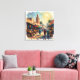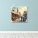 Journey into the vibrant soul of Marrakech through this mesmerizing impressionist masterpiece that captures the magic of North Africa's most enchanting medina. A striking minaret in rich terracotta and intricate tilework rises majestically above bustling market stalls draped in colorful awnings—brilliant reds, golden yellows, jewel-toned teals, and deep purples creating a rainbow tapestry overhead. Below, vendors display abundant treasures in baskets and wooden crates: glowing oranges, deep crimsons, and golden fruits that spill across the warm, sun-drenched marketplace floor. Elegantly robed figures in traditional djellabas navigate the lively souks, their garments rendered in rich blues, burgundies, and soft whites, creating an organic human landscape alive with purpose and grace. Palm trees sway gently at the composition's edges while the sky bursts overhead in luminous blues and creamy yellows, swirling with atmospheric movement and light. The artist's passionate, textured brushwork infuses every element with authentic energy and cultural warmth—from the ornate architecture to the abundance of goods to the humanity flowing through these ancient streets. Perfect for those who cherish Moroccan culture, travel nostalgia, vibrant marketplaces, North African heritage, and art that celebrates authentic human connection and exotic beauty, this stretched canvas transforms your space into a sensory portal to Marrakech's timeless soul.