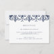 Designat för att samordna med våra Marrakech bröllops- och evenemangsinbjudningar, har detta eleganta mottagarkort i klassisk marinblå och vit färg en marockansk inspirerad geometrisk övre kant. Lägg till din mottagningsinformation som tid, plats och adress, samt eventuell parkering eller transportinformation i matchande marinblå.