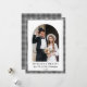 Celebrate your first Christmas as newlyweds with this elegant Married and Bright arch photo holiday card. This modern design features stylish typography with your family name in a hand-lettered script and the year beneath a chic black and white plaid frame. The reverse side showcases a coordinating plaid background with space for a personalized holiday message — creating a timeless and festive keepsake. A perfect newlywed Christmas card to share your love, joy, and holiday cheer with family and friends.