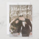 Elegant- och snyggt-fotokort för nyfödda som firar sin första jul tillsammans som make och hustru med en handskriven typografi överlägger vit text som säger "Gift lilla jul". Anpassa den här produkten genom att lägga till din egen bröllop bild och namn vid grund.