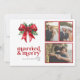 Married & Merry Red Bow Holly Newlyed 3 Photo Julkort