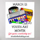 En underbar poster för skolor, lärare, studenter, föräldrar, barn för att främja kreativitet och för att visa stöd för e Youth Art Month! Tur för skolor, konstlektioner och andra utbildningsarenor att visa sitt stöd för konsten.
