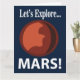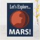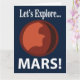 Mars Låt oss Utforska Mars Card-originalutformning av Nisha Prabhu. Bläddra in i kosmosarna med vårt "Låt oss utforska Mars"-kort! Perfekt för rymdentusiasten eller drömmaren i ditt liv, den här vibrerande designen fångar marsskönheten. Vare sig det är för en födelsedag, ett specialtillfälle eller bara en anteckning för att säga "jag tänker på dig", är det här kortet säkert en gnista av fantasi och . Gör den verkligt unik genom att lägga till ditt personliga meddelande inuti. Skicka en biet av universum till dina kära och inspirera dem att nå stjärnorna!