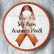 Stödja självskadande medvetenhet och förebyggande åtgärder i mars! Denna 2,25-tumsknapp är ett meningsfullt sätt att känna igen självskadande månad i mars och främja förståelse, stöd och läkning. Överst visas "mars" med ett starkt, fetstilt teckensnitt, som skapar meddelandet tydligt och otrevligt. Under "Självskadande månad" står elegant skriven i blomstrande kursiv stil, som symboliserar hopp, återhämtning och medkänsla. I centrum fokuseras ett slående informationsband för orangen - officiellen färg för självskadande medvetenhet - som visar styrka, motståndskraft och vikten av stöd för psykisk hälsa. En djärv orange gräns ramar som skapar en polerad och öga-fångstdesign. Bära den här knappen stolt på jacka, väska eller lanyard för att öka medvetenheten, uppmuntra till öppna samtal och visa stöd för dem som drabbas av självskador. Ett litet men kraftfullt sätt att främja läkning och hopp!