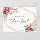 Vill du vara min blomsterflicka? Fråga familj och vänner att vara en del av din bröllopsdag med detta anpassningsbara bröllopsparti-förslagskort. Det har en akvarellillustration av marsala-, orange- och vita blommor med en roséguld geometrisk ram. Detta blommiga brudtärna-förslagskort är perfekt för höst- eller sensommarbröllop. Matchande artiklar finns tillgängliga.