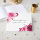 Burgundy (Marsala) och rosa blommigt med vattenfärg faller bröllopsgäst bok med höstdahlier och löv.
