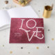 Modern chic enkel typografisk KÄRLEK-design och pars namn på marsala rosa målade abstrakt bakgrund, underbar för det moderna bröllop och jubileet party. Se alla matchande delar i samlingen nedan.