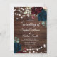 Marsala & Navy Flowers Rustic Wood Bröllop Inbjudningar