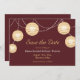 Romantiska party-lyktor på ett trendig marsala-bakgrundsmeddelande markerar detta Spara datumet. Det är en introduktion till perfekten för utomhusträdgårdsbröllop, lada, land, rustik, vår eller sommarceremoni, eller varje mottagning med hjälp av lyktor i dekorationen. Om det behövs ytterligare delar i denna samling, låt oss bara få veta det på prettyfancyinvites@gmail.com.