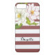 Marsala rand och rosa blommor av modern blommigt iPhone 7 fodral med vit och blek rosa blommor av elegant på en stripe mönster av Marsala och vit rand.