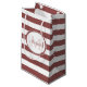 En elegant marsaläröd och vit randig mönster liten presentpåse. Personifiera detta chic mönster genom att lägga till namnet och monograminitialen för hedersgästen. Denna eleganta monogramdesign är en del av Marsala Stripes Party Essentials Sommarfärgsamling.