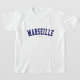 Kontrollera ut denna Marseille t-skjorta! Är du från Marseille, frankrike? Har du en vän eller en familjemedlem, som älskar Marseille, frankrike? Om så, är denna "baner" t-skjorta exakt gåvan som du söker efter! Designen presenterar "Marseille" i välvd marinbokstäver i klassikerhögskolastilsorten.
