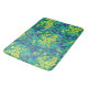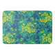 Badmat med färgat blommönster, vacker marshmarigold blomma, stor löv av burka och dandelionknoppar. Färg palett: gult av guldlax och citron, turkos, kalv, grönt och blått färger. © Julia Khoroshikh www.juliakhoroshikh.art #floralmönster #marshmarigold #caltha #floralprint #wildblomm#zazzlemade #badomdecot #bathmats
