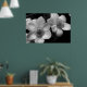 Färdigställ svartvit återgivning av ett par Marsh Marigold-blomning, med extrema detaljer i löv och innerblommor.