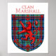 Marshall Scottish tartan plaid mönster-design för Marshall Klan-familjen under den röda Lejona Rampant Shield of Scotland.
