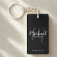 Lägg till en personlig beröring till bröllop med nyckelkedjan personlig marskalkars. Den här nyckelkedjan har marskalkarnas namn i det vita, moderna typsnittet stil och monogram i det lätta grått moderna typsnittet stil som bakgrund med rubrik och bröllop datum i det vita, moderna sans serif-typsnittet stil på svart bakgrund. Perfekt för den bäste mannen, far av bruden och mycket mer.