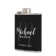 Lägg till en personlig beröring till bröllop med marskalkarna personlig. Den här kolven har personligens marskalkar namn i ett vitt, modernt typsnitt stil och monogram i det lätta grått moderna typsnittet stil som bakgrund med rubrik och bröllop datum i ett vitt modernt sans serif-typsnitt stil på svart bakgrund. Perfekt för den bäste mannen, far av bruden och mycket mer.