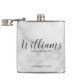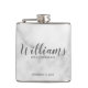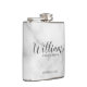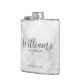 Klassi Elegant Marble Modern Script Personlig Marskalkars Flask med personlig Groomsmans namn i modernt calligraphy font stil med title och bröllop date i modernt sans serif font stil på vit marble-bakgrund. Även perfekt för Far i Bride, Bästa man med mera.