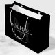 Lägg till en personlig beröring till bröllop med personlig marskalkars presentväska. Den här presentväskan har personlig Groomsmans namn med rubrik och bröllop datum i vitt och monogram i grått som bakgrund, i klassiskt serif font stil, på svart bakgrund. Även perfekt för den bäste mannen, far av bruden, ring och mycket mer.