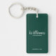 Nyckelkedja för modern Personlig för skript med personlig Groomsmans namn i det vita moderna skriptteckensnittet stil med rubrik och datum för bröllop i modernt sans serif-teckensnitt med stil på bakgrundssidan för smaragd grönt. Även perfekt för Maid of honor, Flower Girl, Budens mamma, Marskalkar, Best Man med mera.