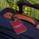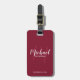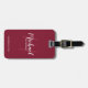 Lägg till en personlig beröring till bröllop med personlig marskalkars bagagemärke. Den här bagagetaggen har personligens namn i det vita, moderna typsnittet stil och monogrammet i det ljusburgudda, moderna typsnittet stil som bakgrund med rubrik och bröllop datum i det vita, moderna sans serif-typsnittet stil på burgundröd bakgrund. Perfekt för den bäste mannen, far av bruden och mycket mer.