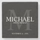 Lägg till en personlig beröring till bröllop med personligens marskalkar underlägg. Den här underlägg har personlig Groomsmans namn med rubrik och bröllop datum i vitt och monogram i grått som bakgrund, i klassiskt serif font stil, på svart bakgrund. Även perfekt för den bäste mannen, far av bruden, ring och mycket mer.
