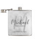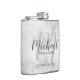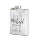 Lägg till en personlig beröring till bröllop med marskalkarna personlig. Den här kolven har personlig marskalkars namn i grått modernt typsnitt stil och monogram i ljust grått modernt typsnitt stil som bakgrund med rubrik och bröllop datum i grått modernt sans serif-typsnitt stil på vit marmorbakgrund. Perfekt för den bäste mannen, far av bruden och mycket mer.