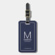 Lägg till en personlig beröring till bröllop med personlig marskalkars bagagemärke. Den här bagagetaggen har personlig Groomsmans monogram och namn med titel och bröllop datum i vitt, modernt sans serif-teckensnitt stil på marin blå bakgrund. Perfekt för den bäste mannen, far av bruden och mycket mer.
