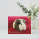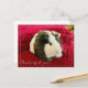 Marsvin Vykort. Detta söta marsvin-vykort visar en ung sköldpaddsfärgad silkesmarsvin som sitter på en röd filt med orden "Tänker på dig". Orden är redigerbara om du önskar. Underbart vykort för barn, marsvin-älskare, marsvin-ägare och djurälskare.