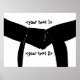 Anpassa Martial Arts Black Bälte Poster Skriv ut med ditt namn, ditt team eller skolans namn eller specifika martialteckningar. Skapa en keepsakt svart bälte-kampanjpresent när du lägger till minnesdatumet för provet. Lämplig för karat, taekwondo, kung fu, ju jitsu eller domo martialkonstnärer. Den här anpassningsbarna poster utskrifter med en digitalt utökad bild av en martialkonst bälte med vit bakgrund.