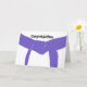 Erkänn att din krigsherre har lyckats med hälsningskortet Martial Arts Lila Bälte Grattiss Greeting Card. Den har ett digitalt förbättrat foto av ett krigsfångsskärl som är bundet i en knut. Instruktörer köper in stora mängder för studenter i skolan eller på gymmet.
