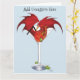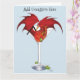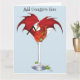 En söt liten röd drake gungar upp till en grönt oliver i ett martinglas