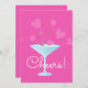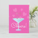 Martini Glass and Rosa Hearts brinner ut ur glaset. Shock rosa bakgrund.