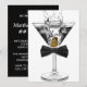 Mans martini födelsedagsfest inbjudan. Denna klassiska svarta bow tie och martini födelsedagsfest inbjudan fungerar bra för en mans valfria födelsedagsfest, pensionering, företags svart tie event, martini fest eller svensexa, etc. Lägg till dina detaljer på framsidan och/eller baksidan av denna eleganta svarta bow tie och martini födelsedagsfest inbjudan.