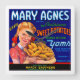 Vintage Frukt låda-etikett för Mary Agnes-märket Söt potatis och sylt.