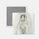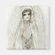 En vacker svart och vit pennskiss av Mary i Grotto som håller en liten blombukett i hennes händer.