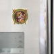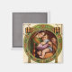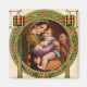 renaissance stil målning av madonna och barn med madonna klädd i grönt och orange på sina axlar, vit och röd halsduk och mattklänning, att hålla småbarn-klenen klädd i blått och Joseph tittar på dem båda i en rund ram som dekorerats med hollyst löv och hollybär. vackra julklumma bild med doftande ram med lanternor vintage. Kristiankonst i gröntar och .