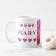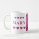 Den här enastående designen har söta flirta hjärtan och den kvinnliga "Mary" i namn i elegant, blommigt, inspirerad av ett foto av en helt blommad vattenblomma från rosa vår. Det är en underbar och charmerande gåva till varje "Mary" i ditt liv, vare sig hon är familjemedlem, mor, dotter, mormor, lärare, granne, vän, sjuksköterska eller någon annan som du vill det med. Om du heter Mary, hänge dig åt den speciella designen och börja dagen med ett varmt kaffe och söta blommor! Om du vill ha speciella förfrågningar eller frågor kontaktar du konstnären på wafadahdalcreates@gmail.com. © Wafa Y. Dahdal - Med förbehåll för alla Höger. WD Art