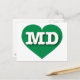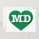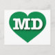 Det här vykortet har ett pulserande hjärta av grönt som innehåller det feta, vita, övre fodral brev MD, förkortningen för officiellen Maryland, det gamla linjetillståndet. Postkortets baksida är tom och väntar på din anpassade text eller handskrivna känslor.