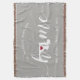 Visa lite hemstatstrots med denna söta rustika grå kastfilt med "home" i vit kalligrafiskritstilsbokstäver med en siluettkarta över delstaten Maryland som ersätter bokstaven "O". En röd hjärtillustration inuti statskartan fullbordar designen; du kan ändra hjärtats position till din hemstad genom att öppna designverktyget och dra hjärtformen till din favoritplats. Anpassa med din hemstad, familjenamn och etableringsår för att skapa en perfekt och minnesvärd husvärmningspresent eller tillägg till ditt nya hem.