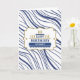 Anpassa denna födelsedagsönskan genom att lägga till namn på födelsedagskalkylen på framsidan. Utformningen har en marin blå och vit abstrakt och en vit märkre som innehåller texten. Det har guld gräns och guld.