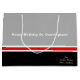 En stark, djärv design gör den här stora perfekten för presentationer av gåvor till en speciell man, oavsett om det är make, pojkvän, son eller chef. Färg-band av grått, rött och svart skapar en klassisk utformning. Ändra exempeltexten om du vill lägga till mottagarens namn och namnen i vitt.