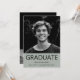 Den här inbjudan till studentfest innehåller en modern och manlig grått- och svart design, med en plats för dina foton på både framsidan och baksidan.